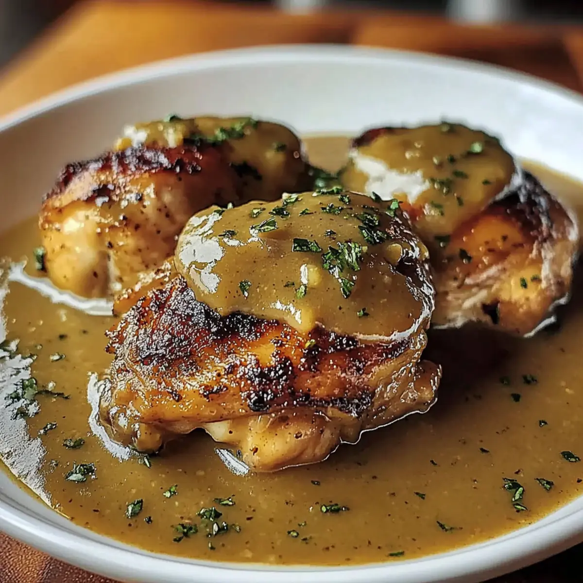 - Remove from oven, spoon gravy over the chicken, garnish with parsley, and serve hot.