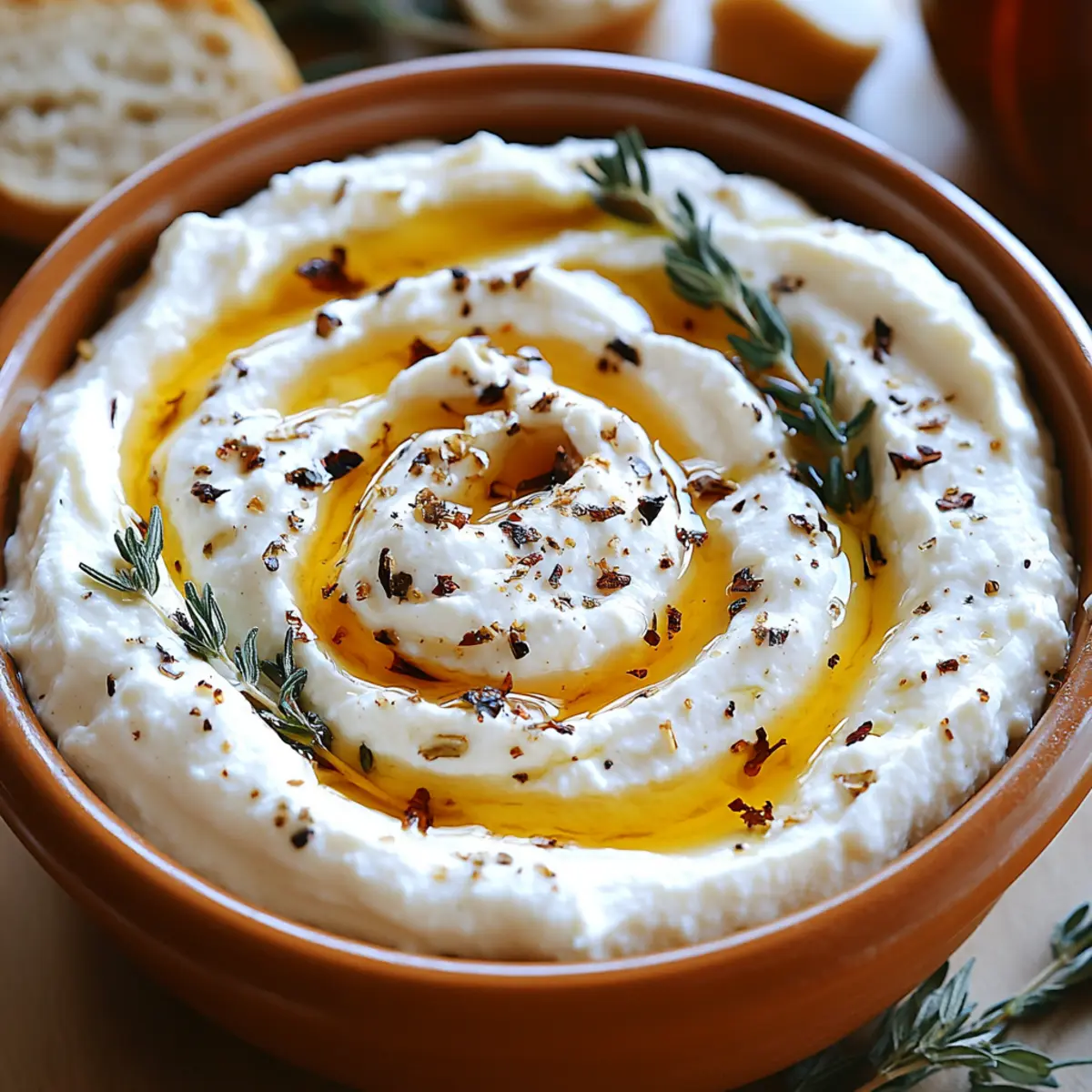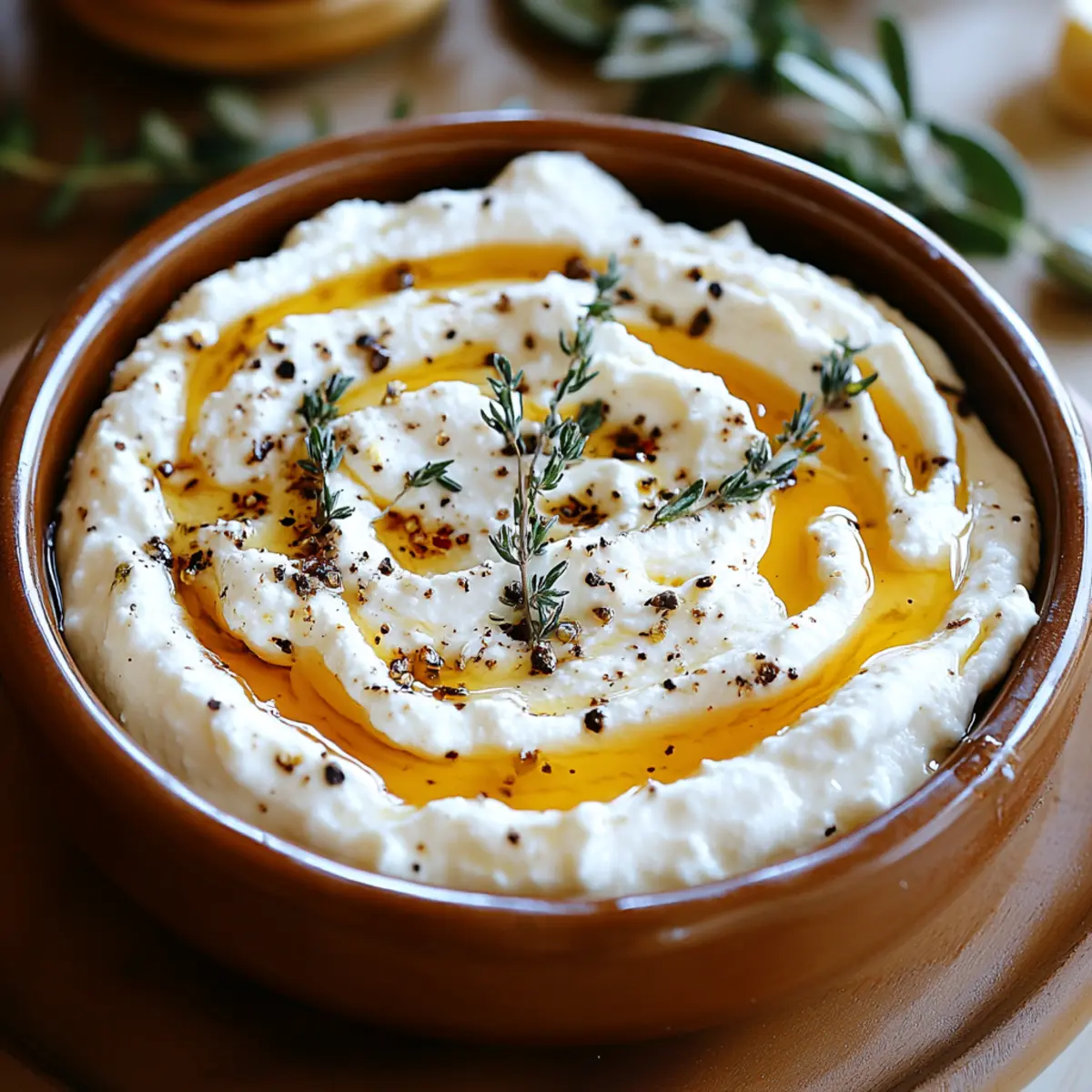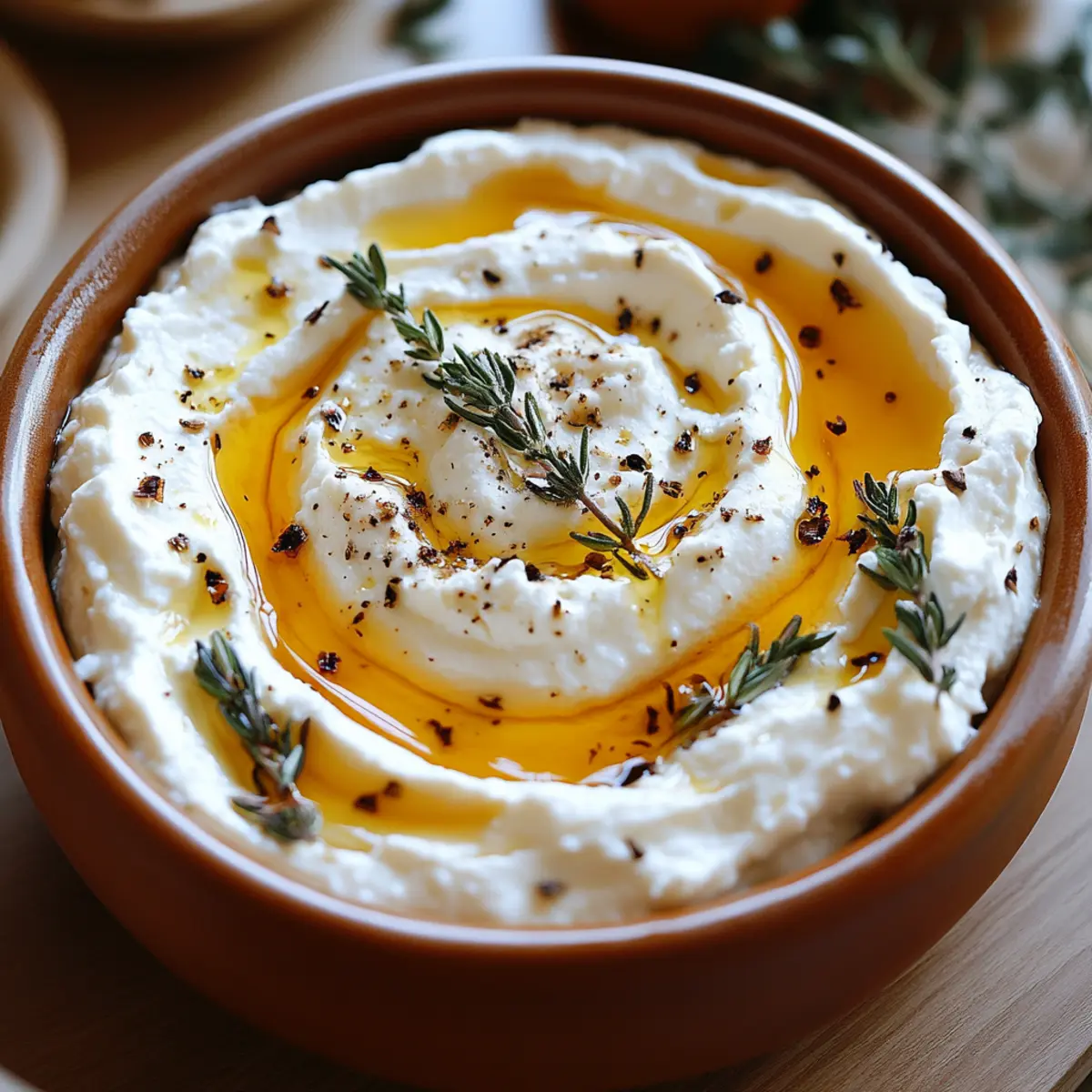 - Plate the Dip: Transfer the whipped ricotta into a shallow serving dish, spreading it evenly. Create gentle swirls and dips.
