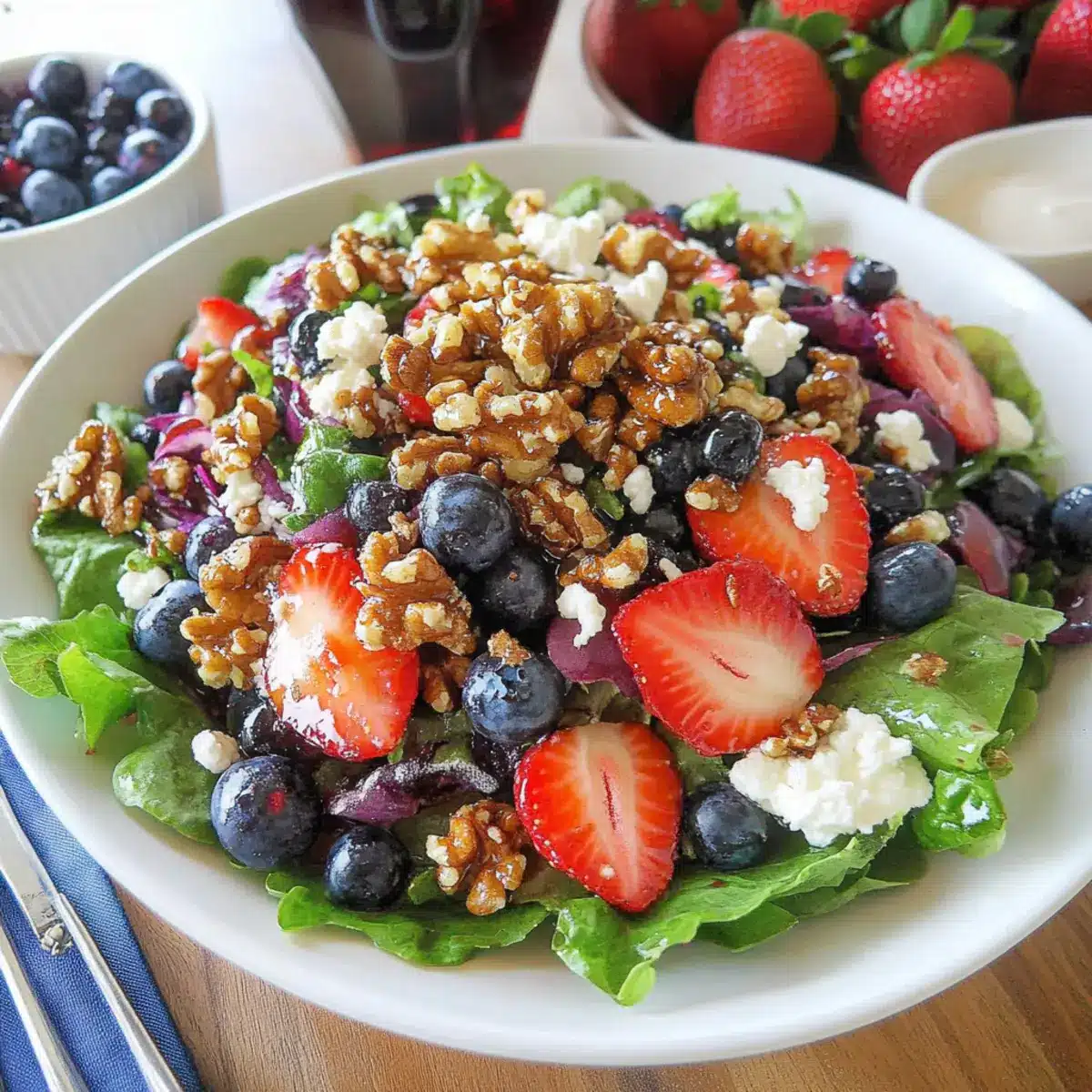 It’s best not to freeze this salad itself due to the texture of the berries, which can become mushy upon thawing. However, you can freeze the candied walnuts! Place them in an airtight bag for up to 3 months. When ready, simply thaw at room temperature before sprinkling them over your salad for that delightful crunch.