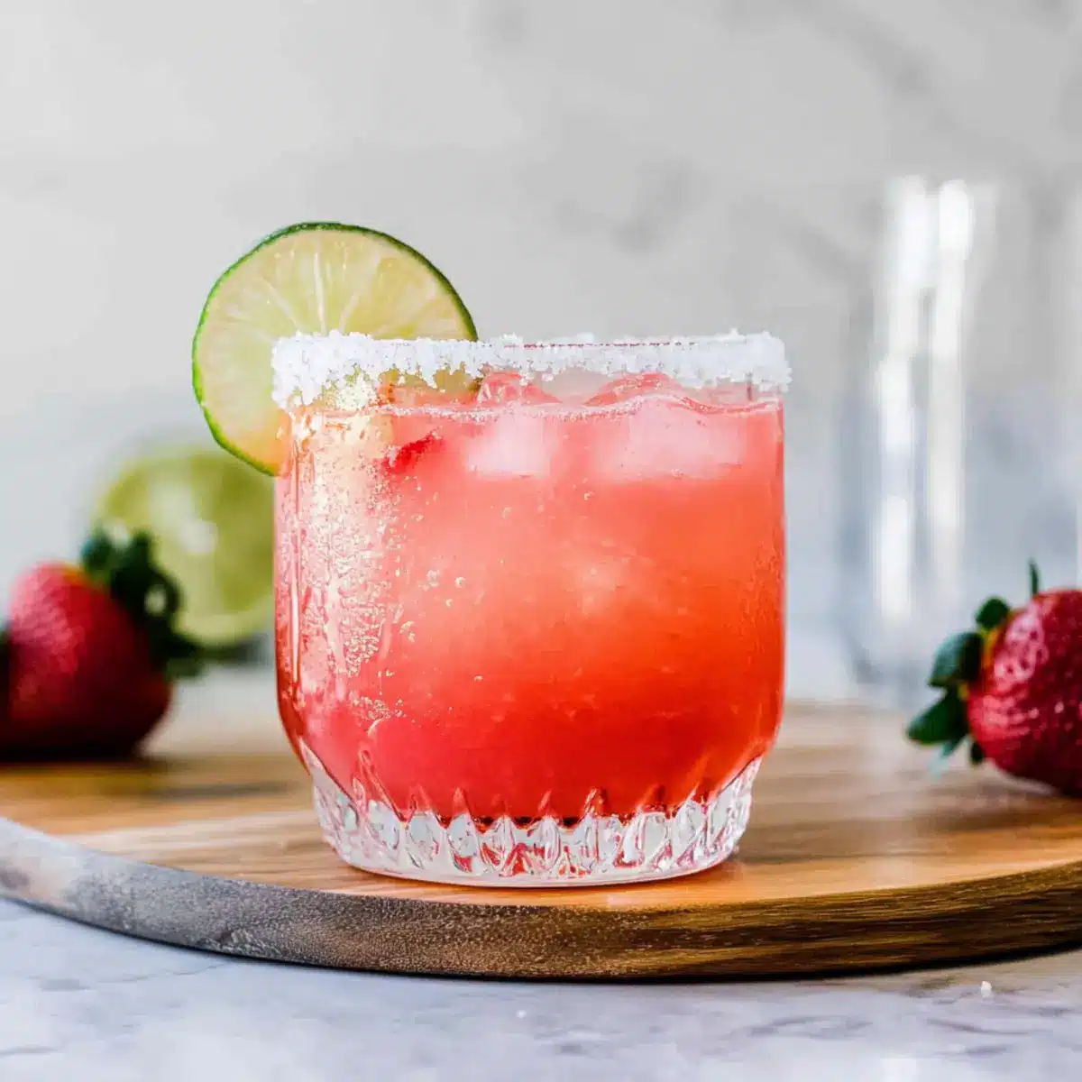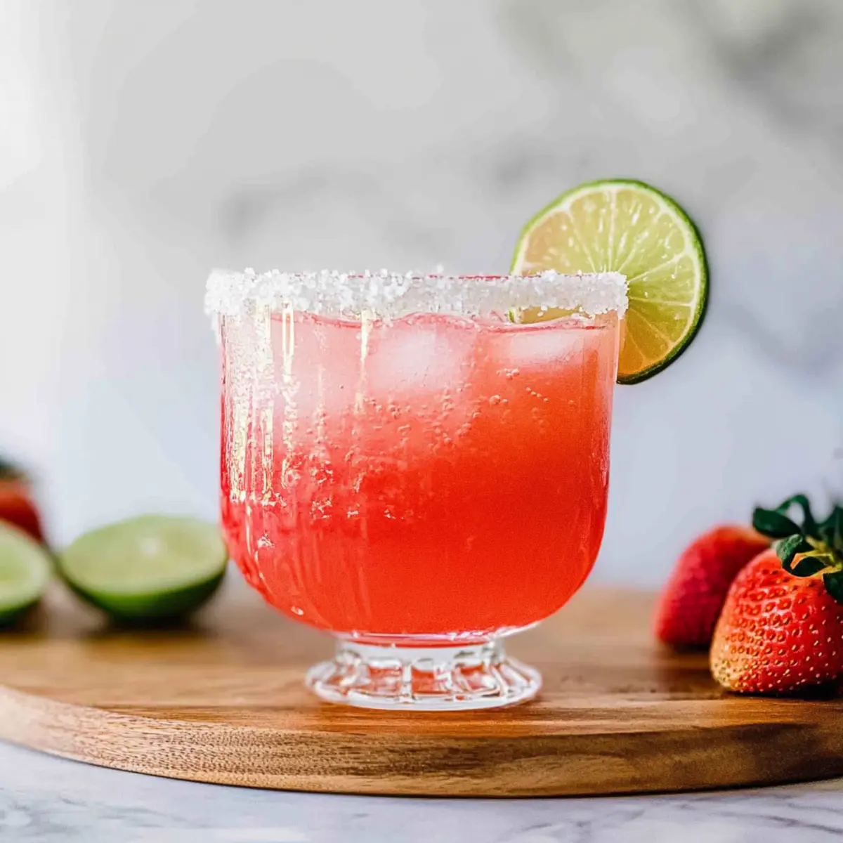 - Garnish with a lime wedge or a fresh strawberry. Serve immediately.
