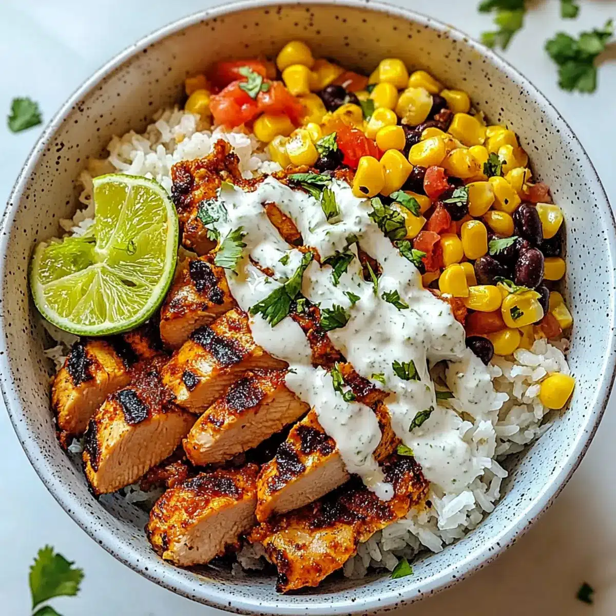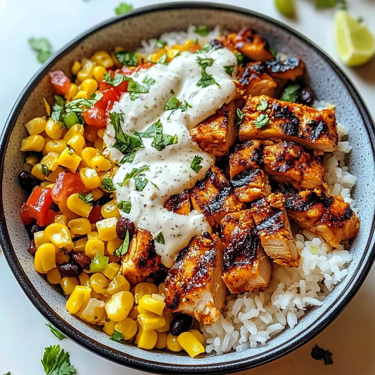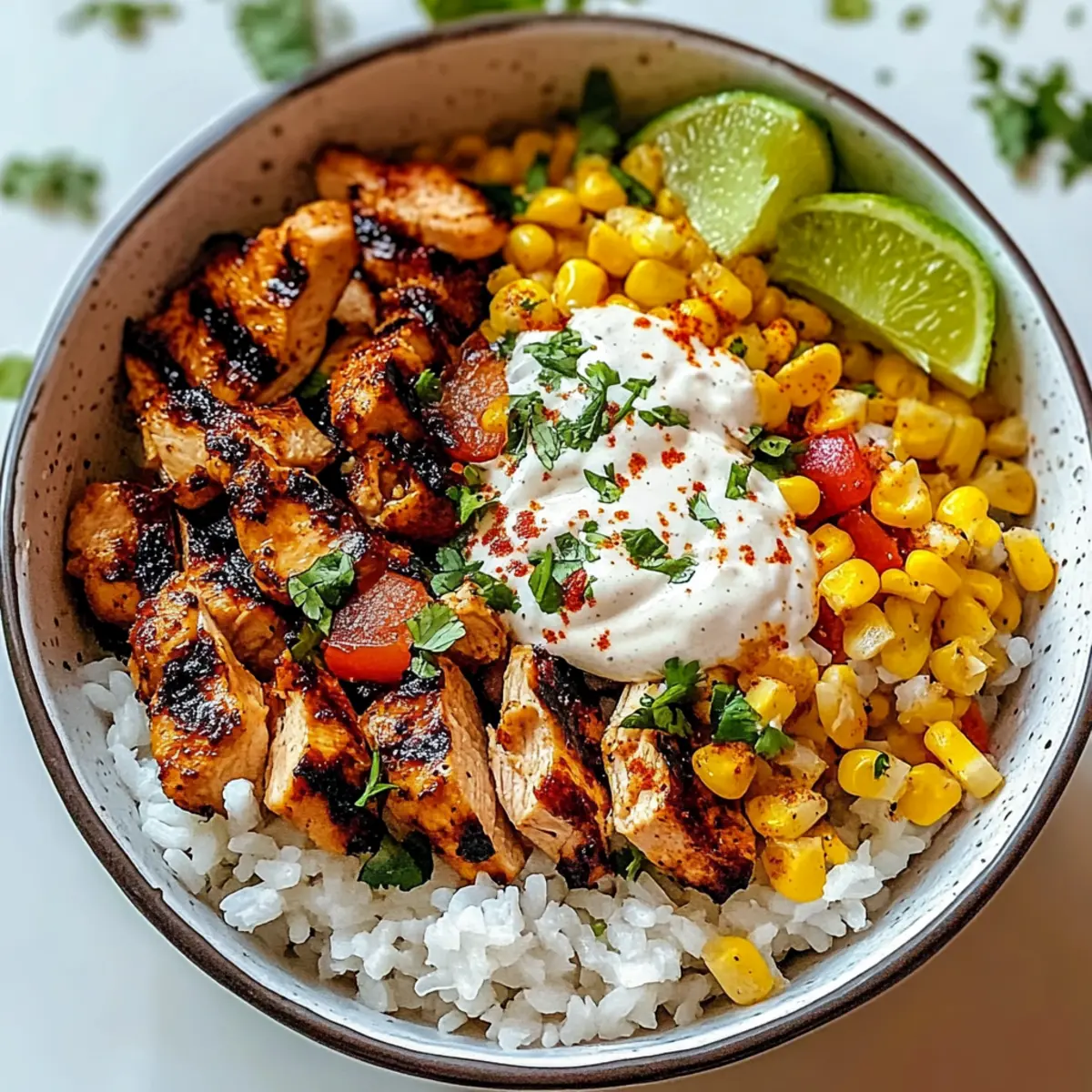 The Street Corn Chicken Rice Bowl is perfect for meal prep! You can prepare the rice, charred corn, and lime crema up to 3 days in advance, storing them separately in airtight containers to maintain freshness and avoid sogginess. Additionally, grilled chicken can be cooked up to 24 hours before serving and stored in the refrigerator; just make sure it cools completely before sealing. When you’re ready to enjoy this tasty dish, simply reheat the rice and chicken, assemble your bowl with the chilled toppings, and drizzle the lime crema before serving. This way, you’ll have a delicious, easy meal ready in no time—just as flavorful as if it were made fresh!