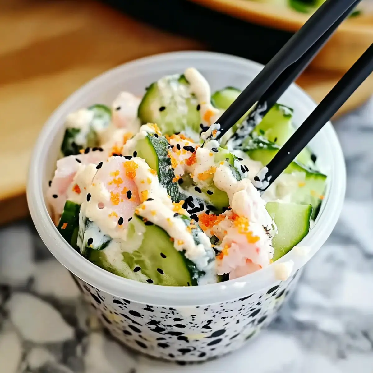 Spicy Kick: Drizzle spicy mayo or a generous squeeze of sriracha for those who love a little heat. This will turn your Sushi Cucumber Salad into a flavorful adventure that excites the palate.