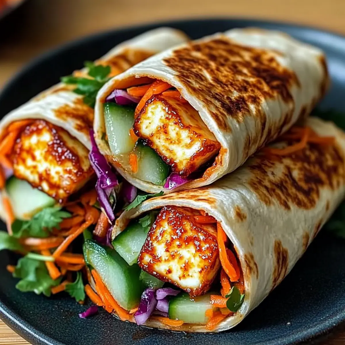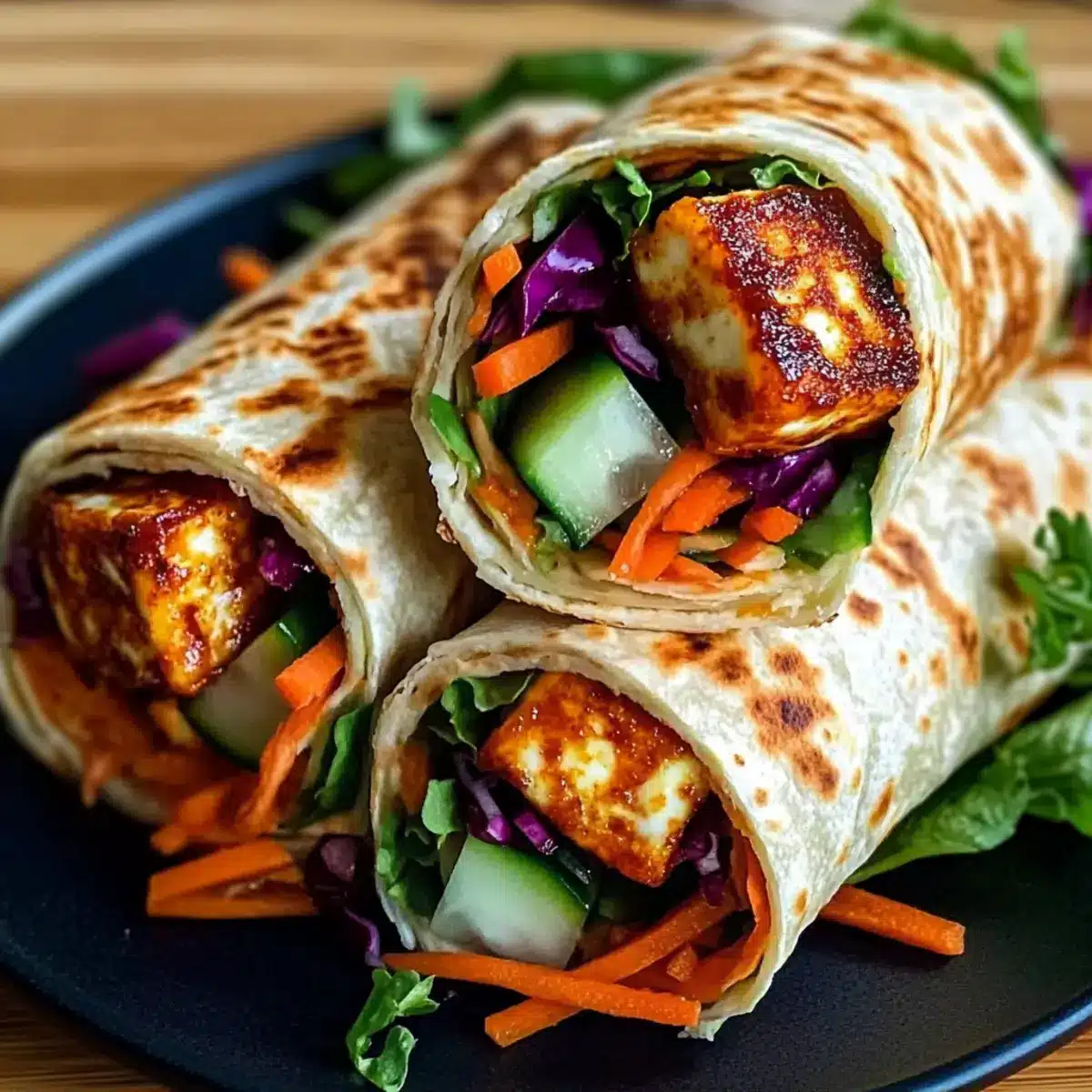 Once the halloumi is perfectly golden, it’s time to assemble your wraps! On a tortilla, spread a generous layer of Greek yogurt or hummus for added creaminess. Next, layer the lettuce followed by your sliced vegetables, and finally, place the crispy halloumi on top. Finish with a warm drizzle of sweet chili sauce, ensuring that every bite is packed with flavor.
