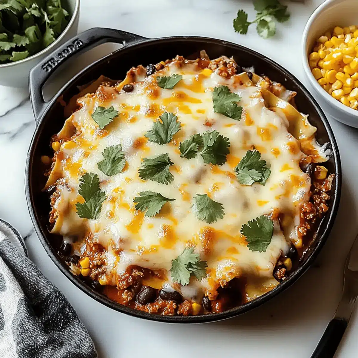 As I stood in my kitchen, the aroma of spices wafted through the air, sparking excitement for the dinner I was about to create—Taco Lasagna! This easy dinner recipe combines the heartiness of traditional lasagna with the bold flavors of a taco feast, making it a true crowd-pleaser and perfect for any weeknight meal. With layers of seasoned ground beef, soft tortillas, and melting cheese intertwined with fresh black beans and sweet corn, each bite gives you that comforting warmth we all crave. Plus, it’s adaptable for different dietary needs; whether you prefer ground turkey or a plant-based option, this dish welcomes flexibility. Are you ready to embark on a flavor adventure that will nourish your family and impress your friends? Let’s dive into this delicious recipe together!