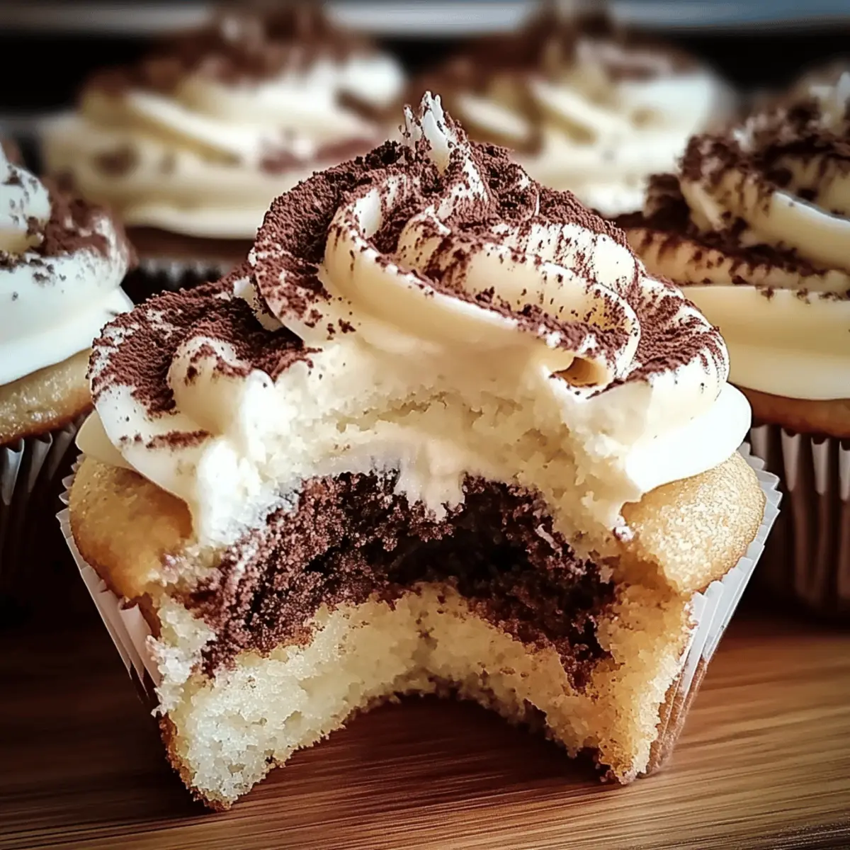 Generously pipe the mascarpone frosting onto each cupcake, creating a beautiful swirl on top. Finally, dust each frosted cupcake with cocoa powder for that classic Tiramisu touch. These delightful Tiramisu Cupcakes are now ready to impress your family and friends!