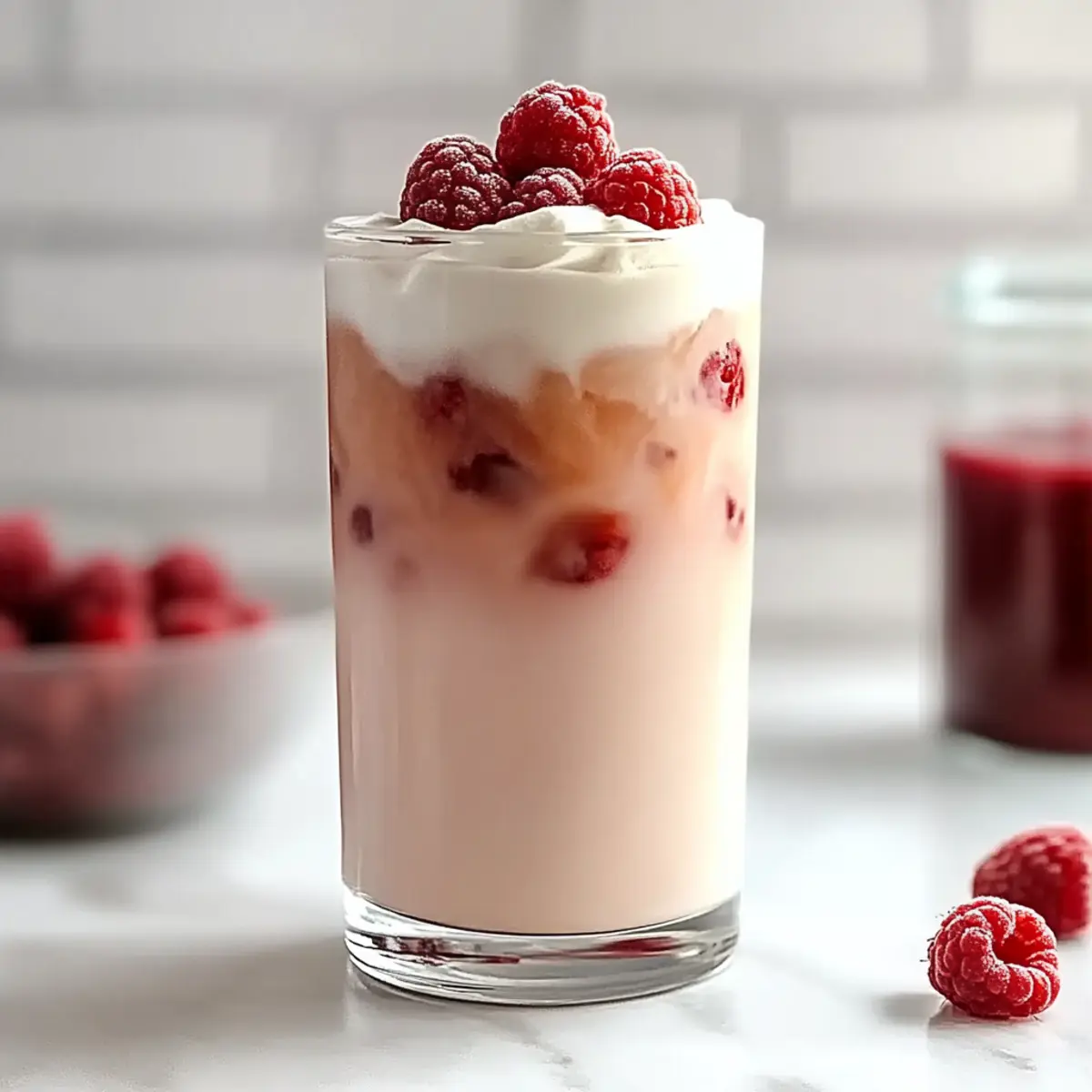 Simplicity, this Vanilla Raspberry Iced Latte requires minimal effort and uses easy-to-find ingredients, making it perfect for beginners! Flavor Explosion, the combination of creamy vanilla and tart raspberry creates a delightful balance that dances on your palate. Customizable, from switching to chai tea to choosing your favorite milk, this drink adapts to your preferences. Vibrant Presentation, its colorful layers not only taste amazing but look stunning, making it ideal for impressing guests. Serve it alongside pastries for brunch or as an afternoon delight. Ready to blend your own café experience at home? Check out our tips for a London Fog Latte for another delicious option!